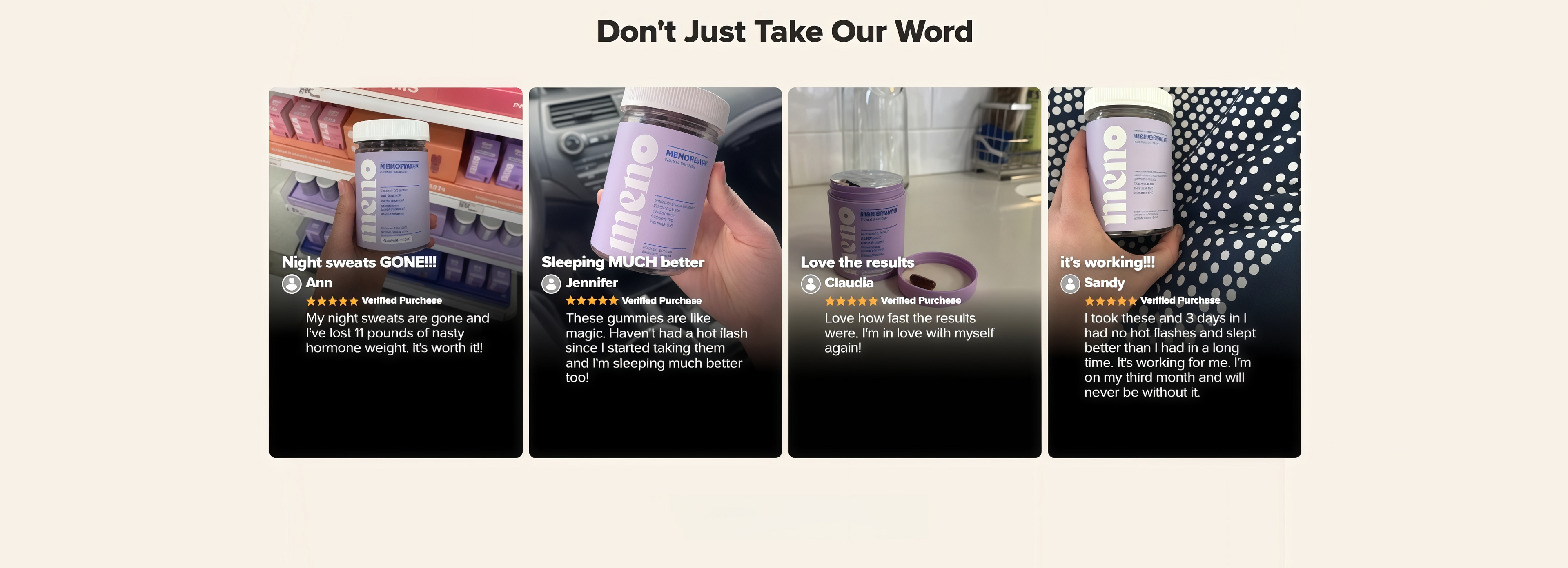 I purchased the supplements about 2 weeks ago. I was suffering from severe night sweats and hot flashes that would take me out every time. I am not having night sweats and my hot flashes have decreased significantly. Flashing is not the dripping off my forehead anymore and are lasting seconds versus minutes. I highly recommend giving it a try. Non hormonal and cost efficient.