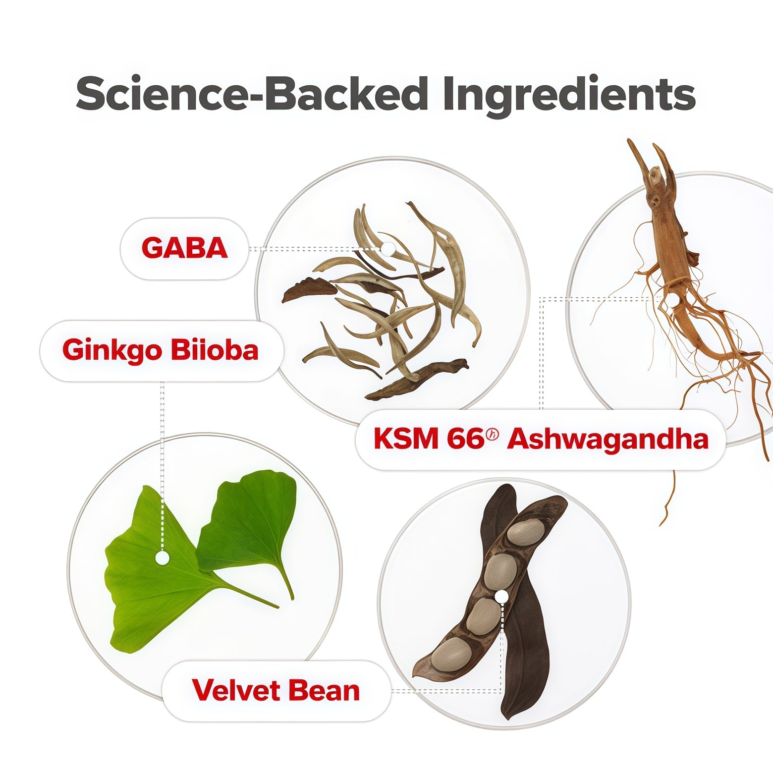 KSM-66® Ashwagandha and GABA are clinically studied to support a healthy mood and relaxation—helping you step out of overthinking and ease into connection. Velvet Bean provides precursors to dopamine (the “feel-good” chemical), so you're not just physically ready… you're craving it, too.